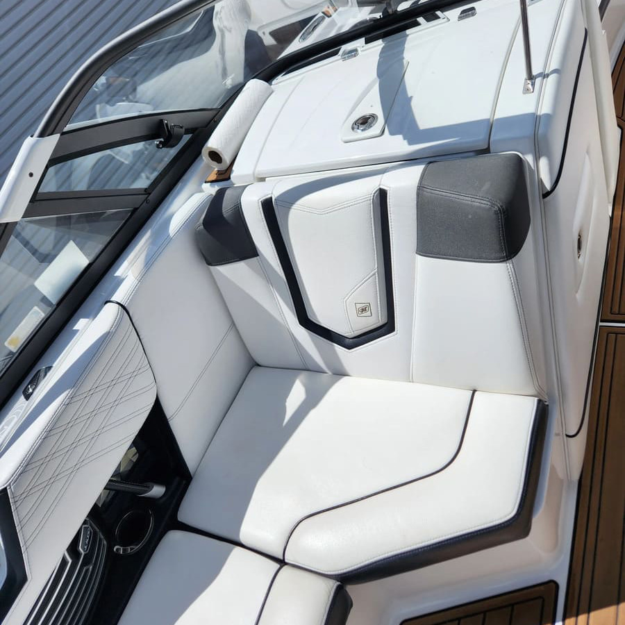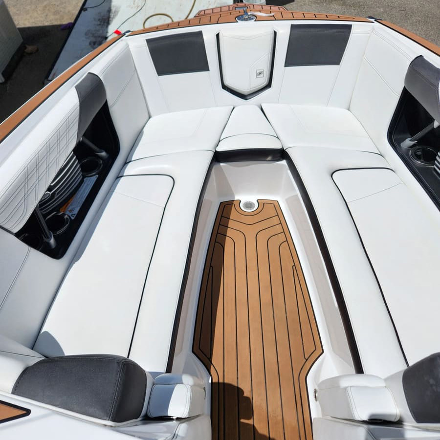 Wash and Wax Package: Ideal for routine maintenance, this includes hull cleaning, non-skid surface treatment, vinyl seat conditioning with UV protection, and engine area detailing. We also apply wax to the rub rail, topside, and metal fixtures for lasting shine.