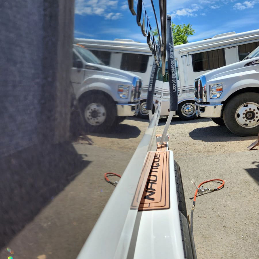 RV cleaning involves detailing the exterior of recreational vehicles, which are typically larger and more complex than standard cars.